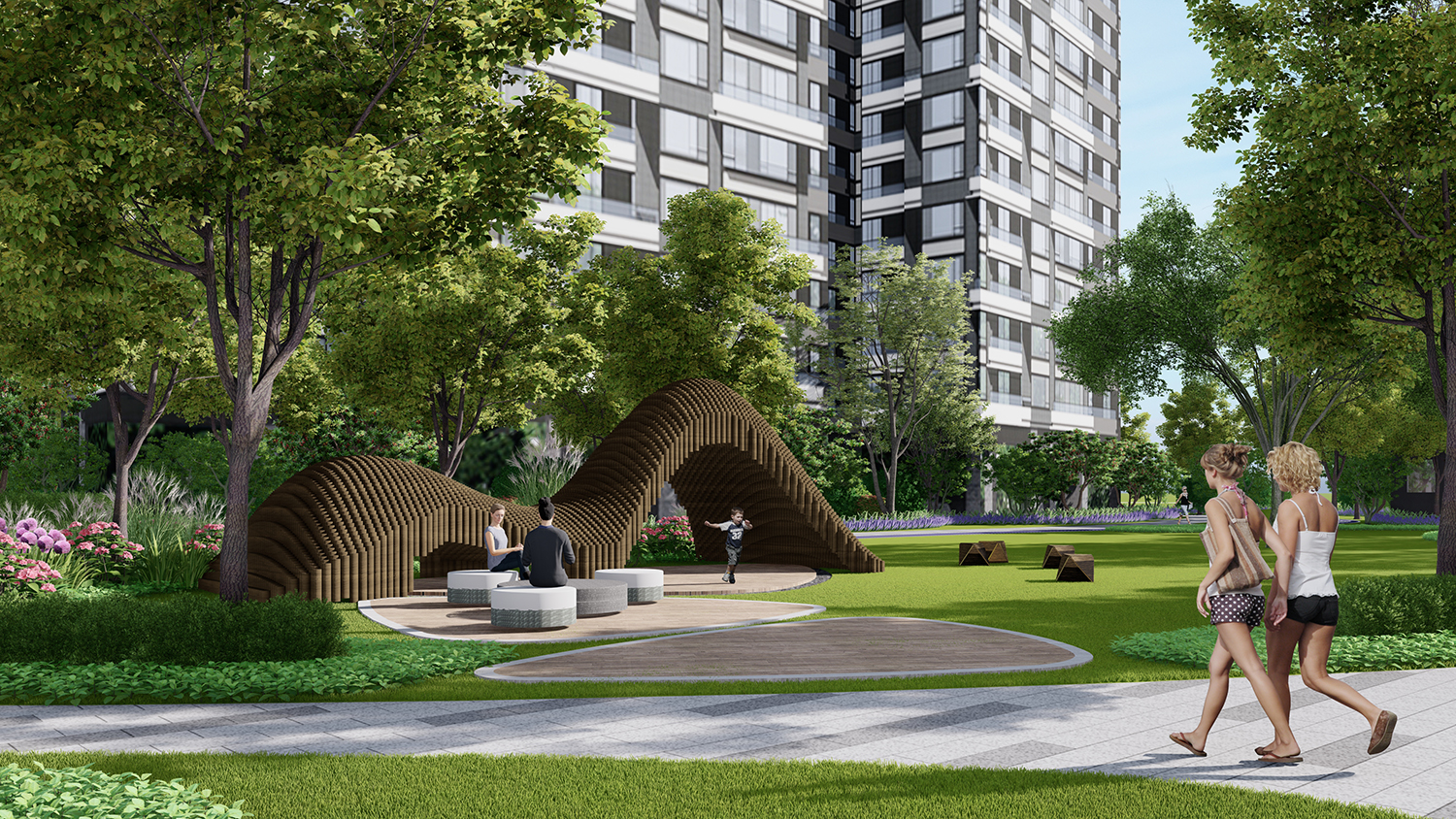 設計(jì)從“現代雨林,山水(shuǐ)林城”的(de)景觀概念出發,在在尊重場(chǎng)地(dì)原則的(de)基礎上(shàng),關聯架空連廊,解構消防場(chǎng)地(dì),通過折疊、圍合手法打造自然滲透的(de)密林,構建“一軸、一帶、三中心、多重花園”的(de)景觀結構,希望能(néng)夠通過現代自然的(de)手法來營造公園式的(de)遊息體驗和(hé)流動立體的(de)視覺效果,使得整個(gè)居住空間變得生動而有(yǒu)趣。