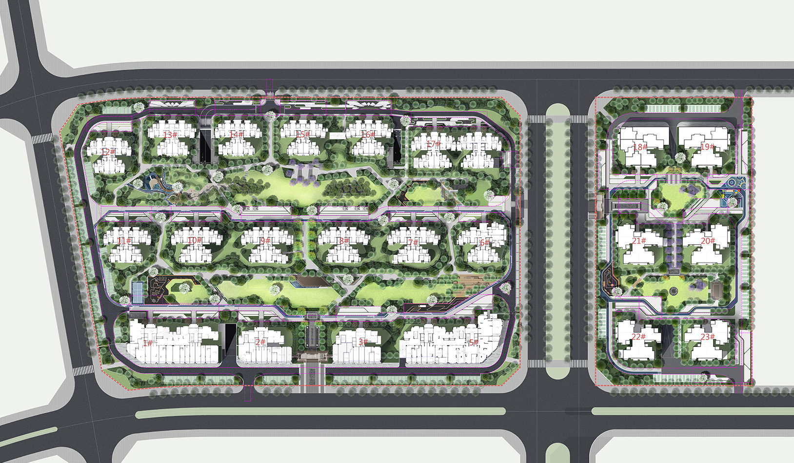 設計(jì)師(shī)将傳統的(de)中式園林意境與現代的(de)設計(jì)手法相(xiàng)結合,以古作新,新舊融合,探討(tǎo)現代東方意境的(de)人(rén)居理(lǐ)念。在奢華與簡約、複古與時尚、内斂與張揚間尋求一種意境緻遠的(de)品質空間。通過不同空間的(de)營造,吸引人(rén)們走出戶外,增強住區居民(mín)的(de)聯系溝通,重塑鄰裏新生活,構築富有(yǒu)生氣的(de)城市生活氛圍。