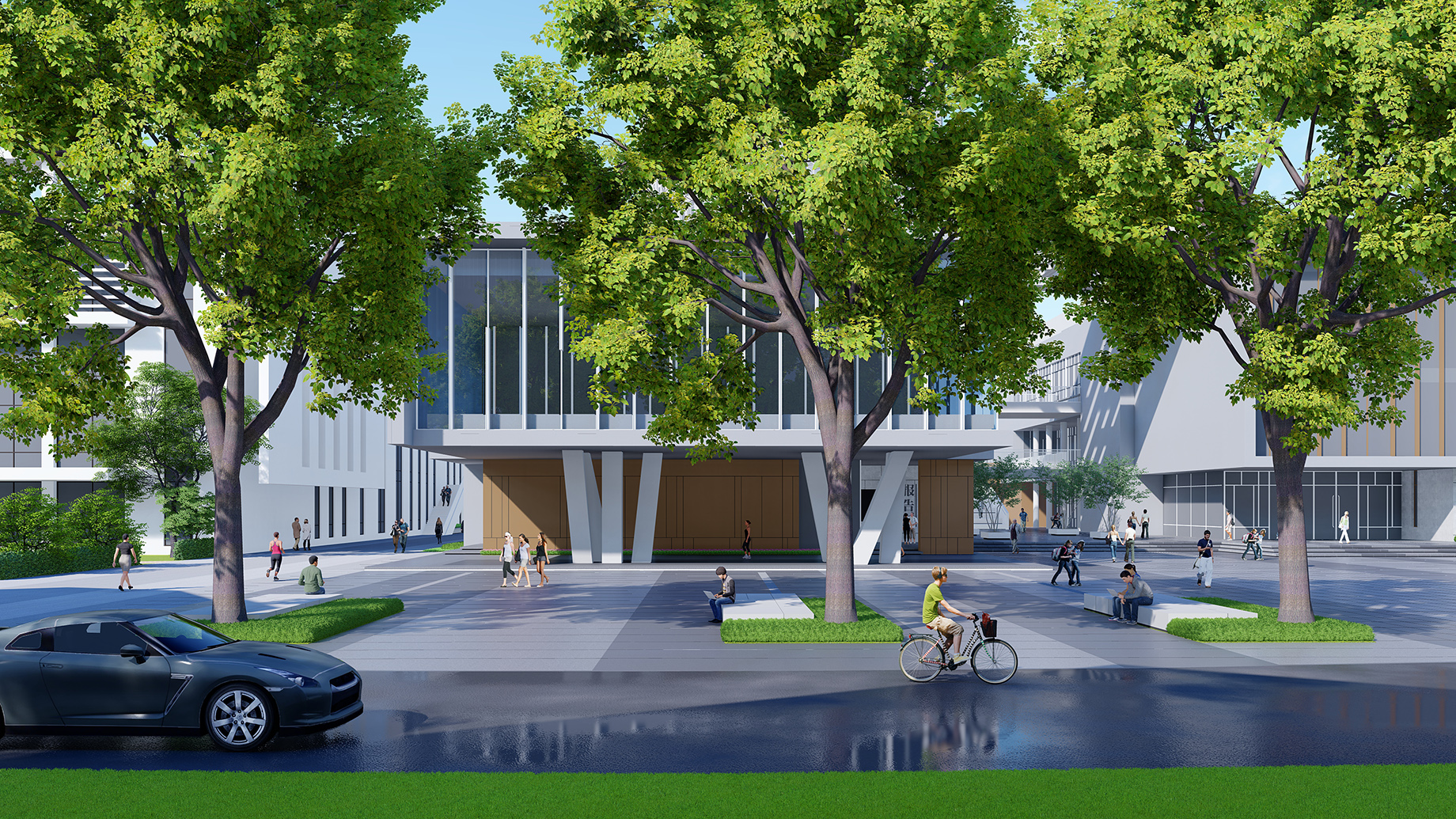 口迎賓形象區以多功能(néng)軸線通道空間,線條與體塊的(de)結合,延續簡潔現代的(de)建築風格,以此演繹對場地(dì)和(hé)建築的(de)解讀, 形成了良好的(de)對外形象展示面。二層通過部分(fēn)連廊連同實訓樓,使各種流線在獨立中又(yòu)有(yǒu)機聯繫,方便教學、讀書、閱覽及辦公等一系列人(rén)員使用(yòng)問題,凸顯出空間的(de)交往性。