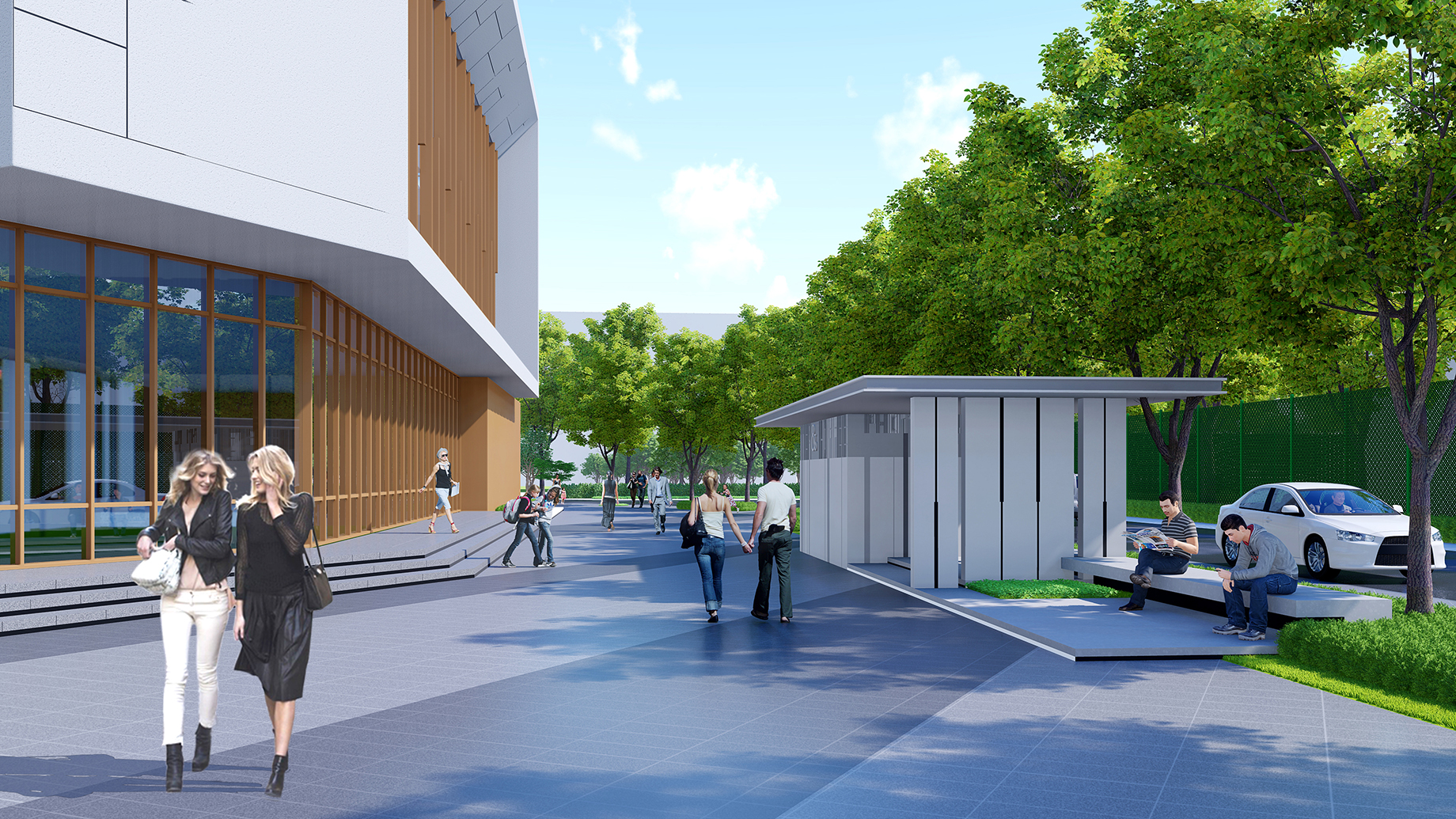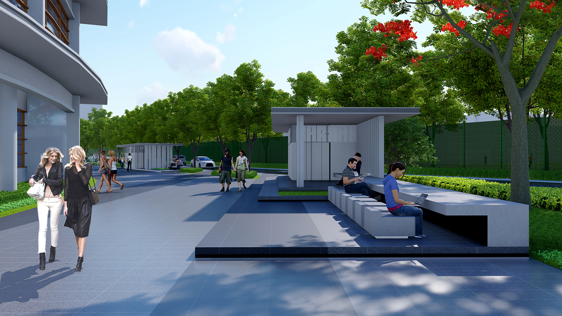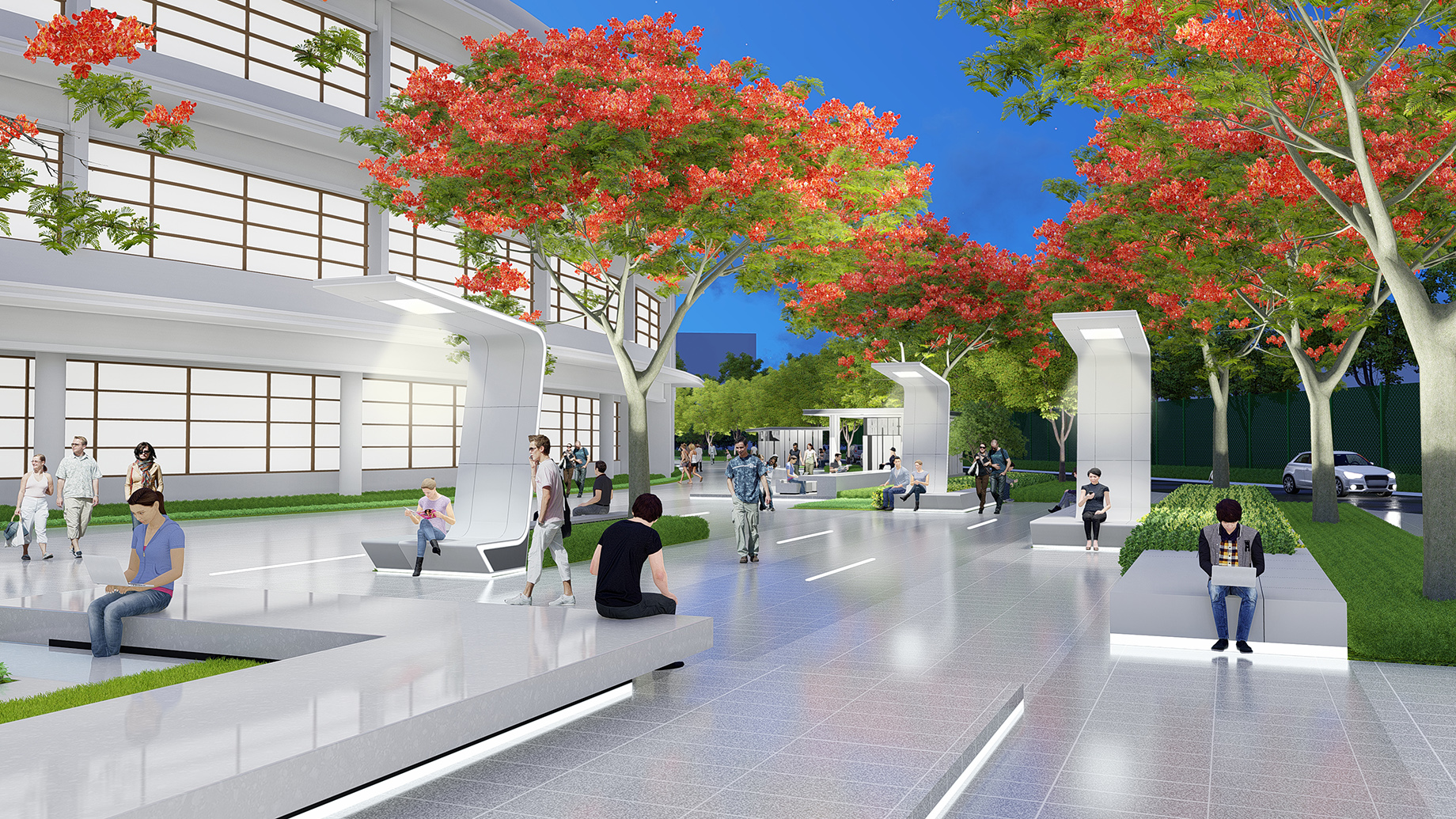 As an extension of the interior space to the landscape, the office square has simple and efficient lines, ensuring enough openness and transparency in the space.