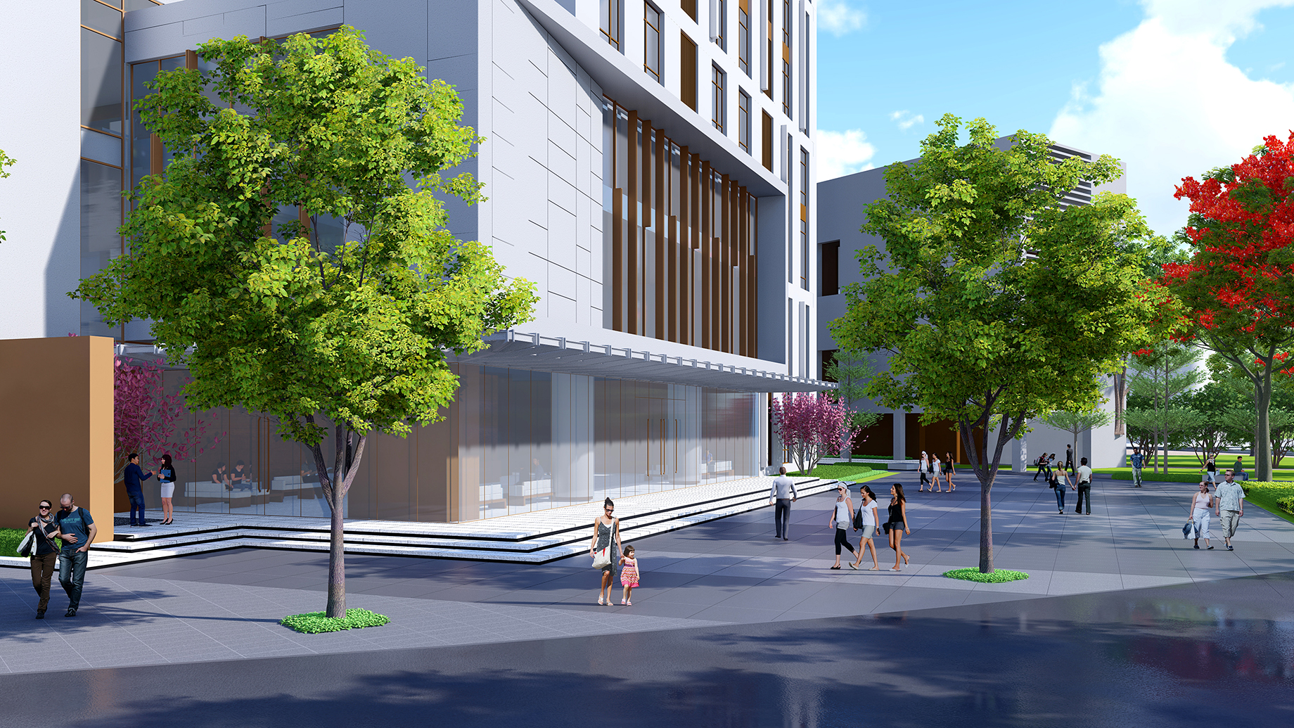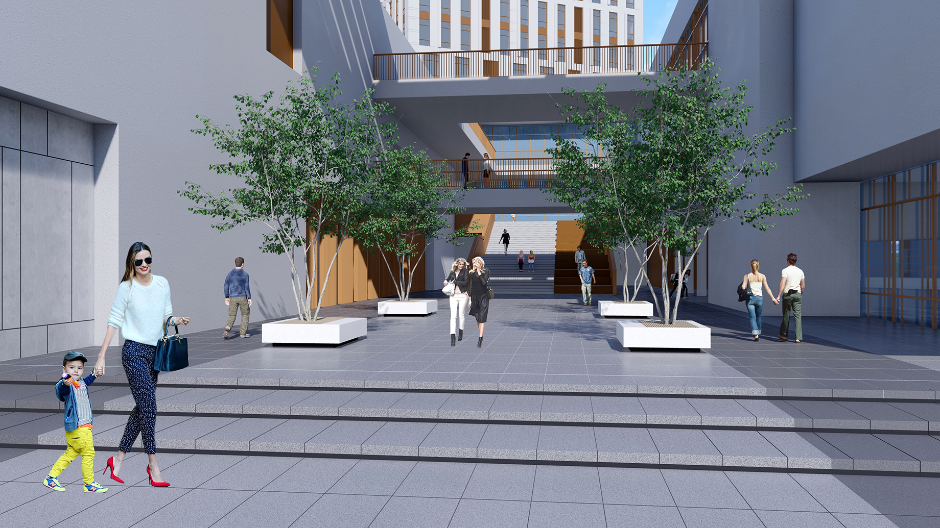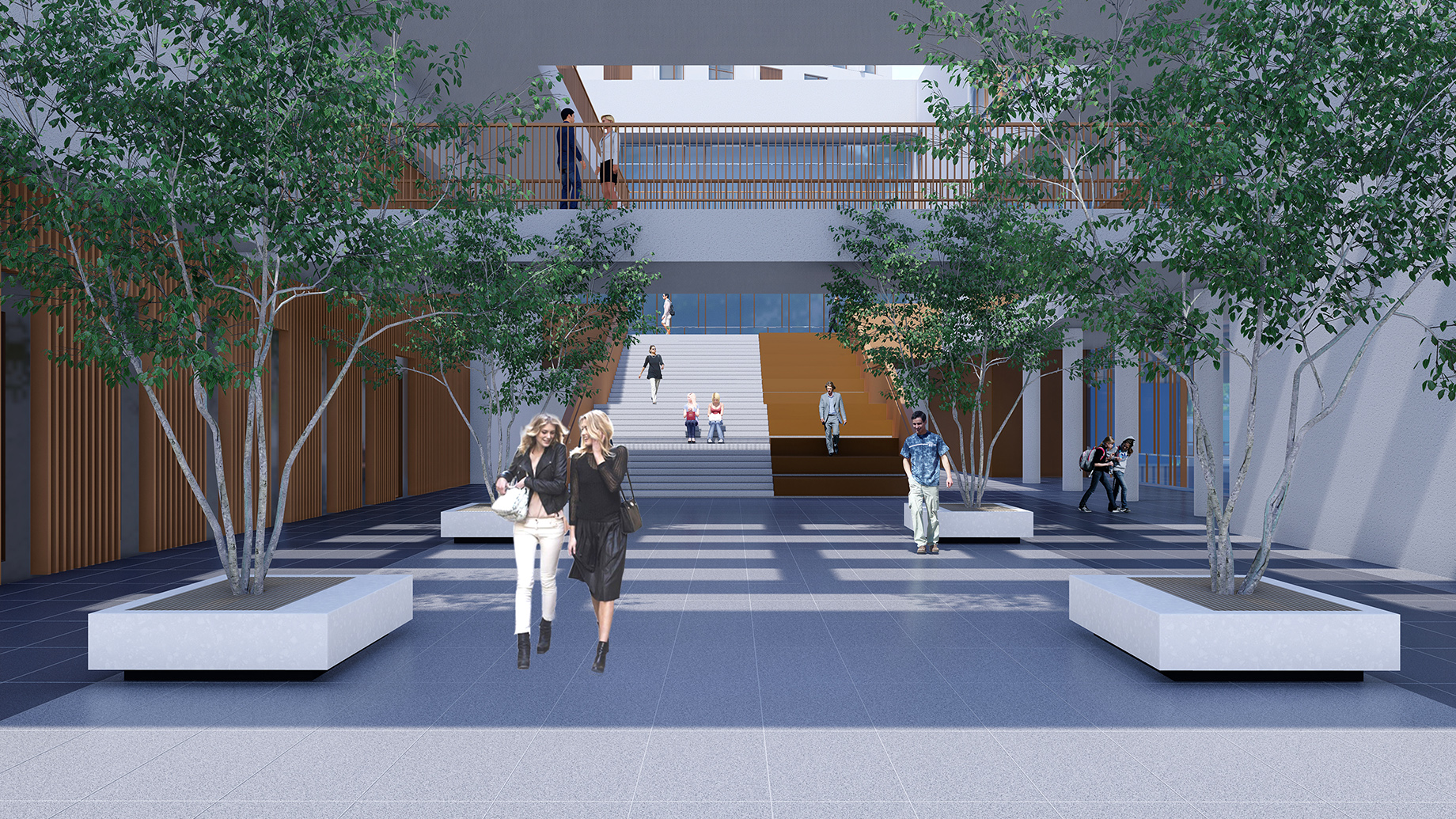 As an extension of the interior space to the landscape, the office square has simple and efficient lines, ensuring enough openness and transparency in the space.