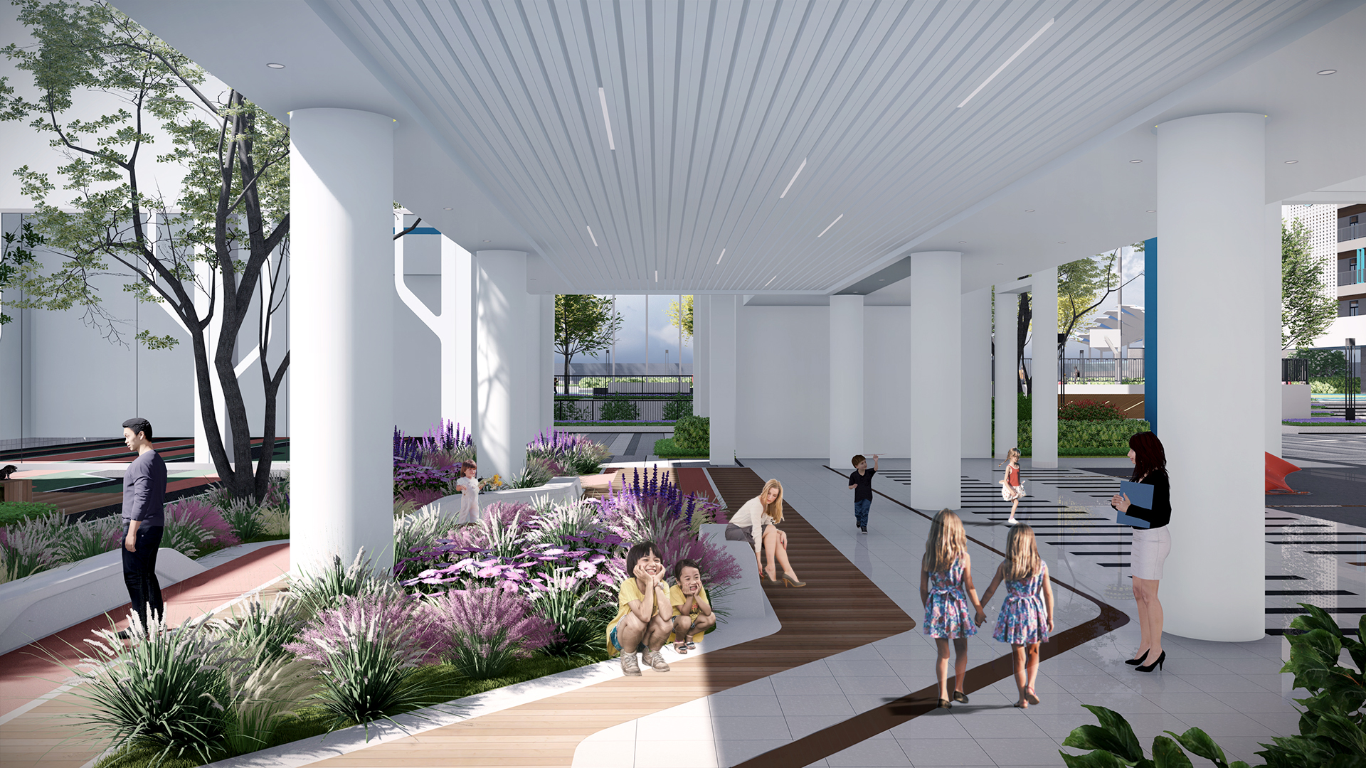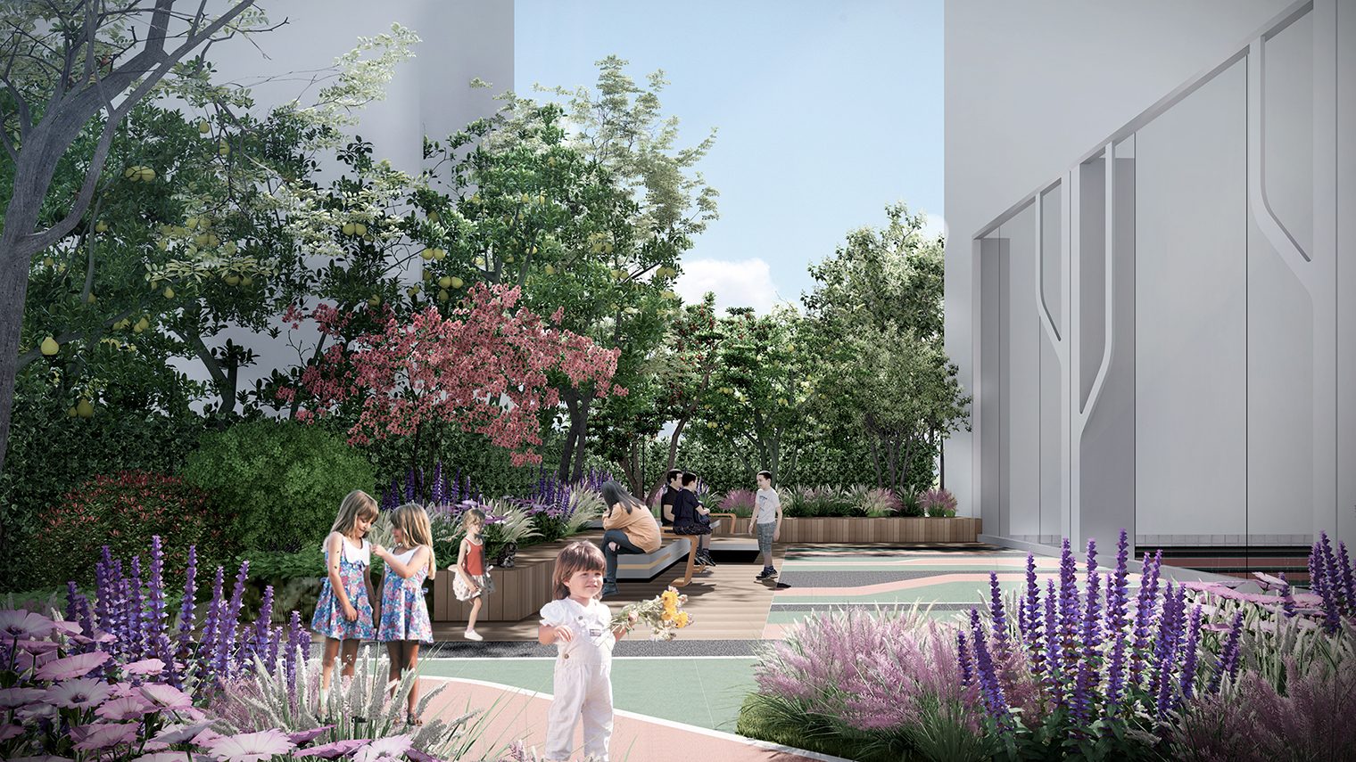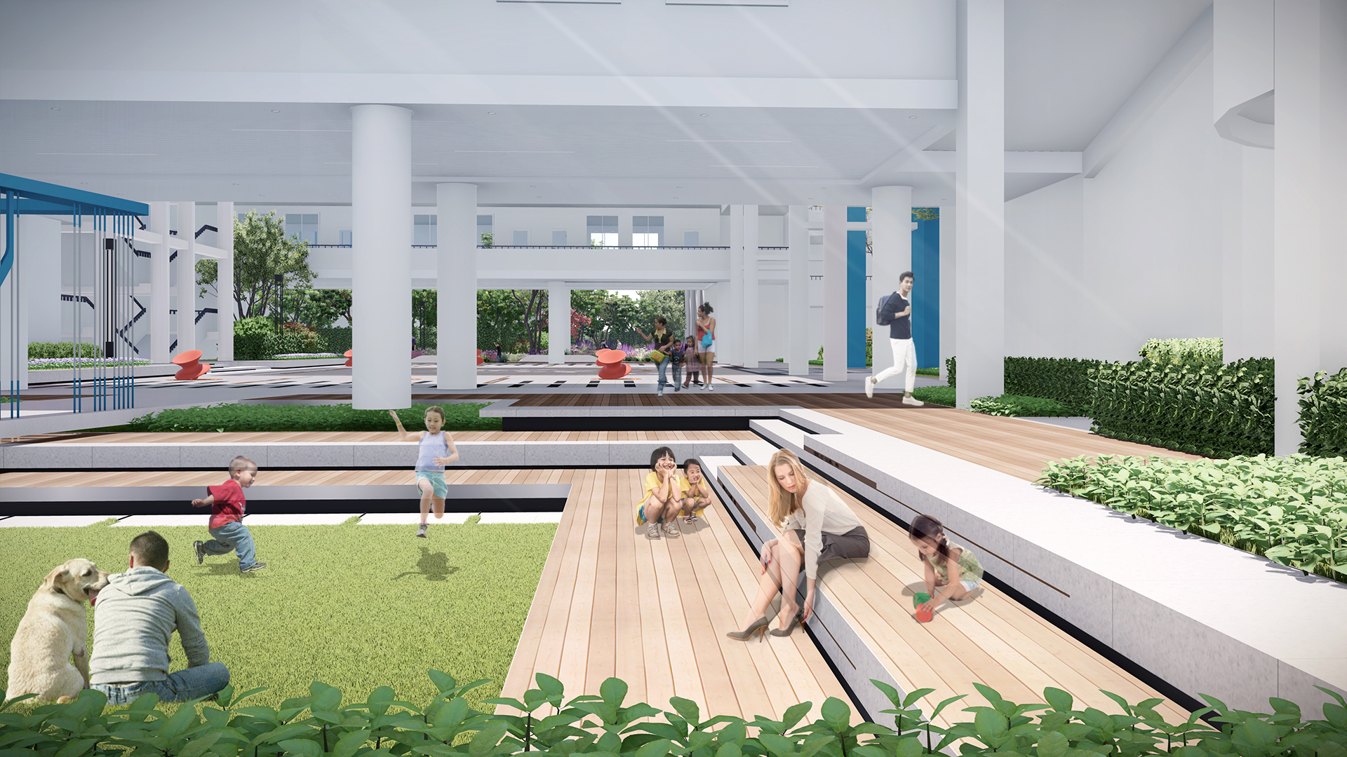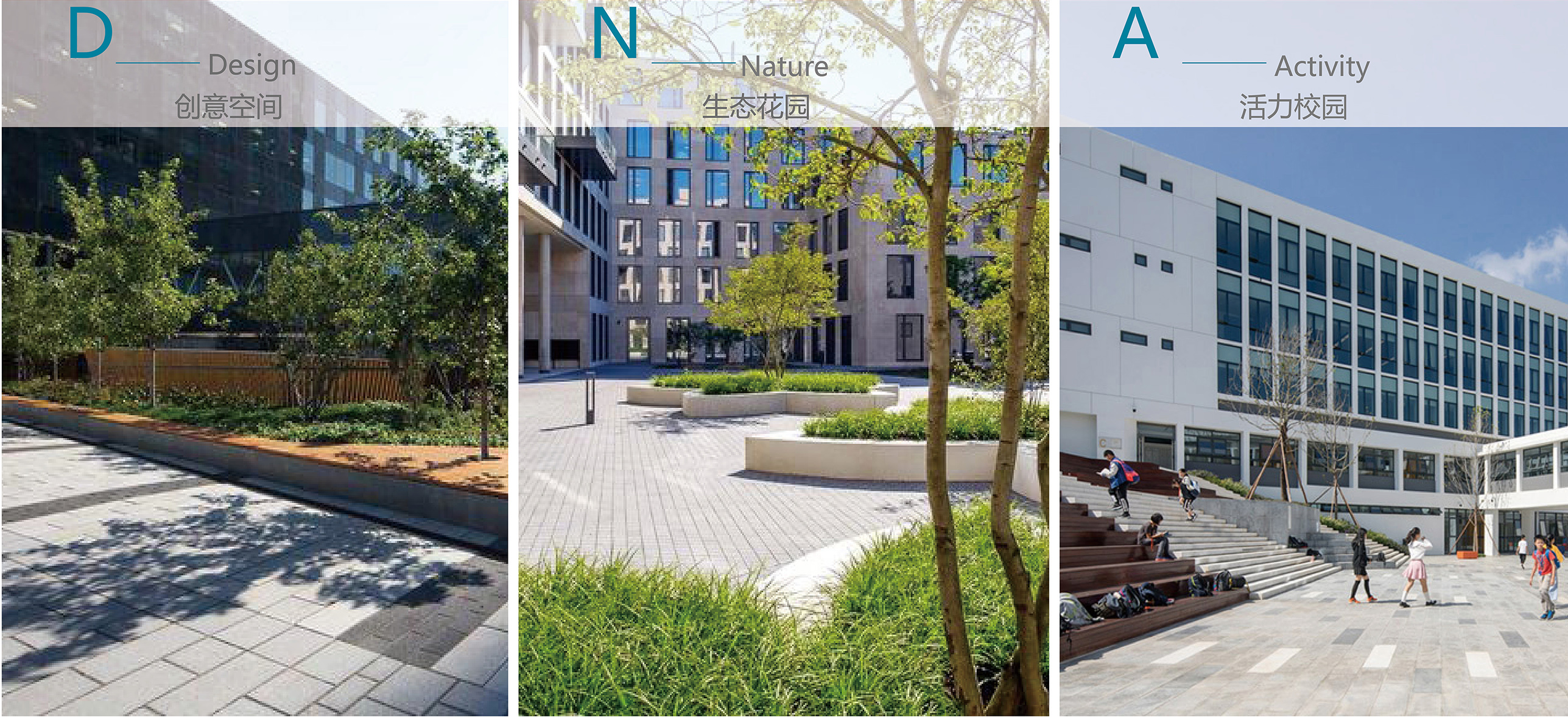 荔園小(xiǎo)學位於深圳市福田區同福路(lù),生態環境優美(měi),臨近地(dì)鐵二號線交通便利;周邊有(yǒu)圖書館、科學館、博物(wù)館、大(dà)劇院,文(wén)化氣息濃厚。設計的(de)初衷是要在校(xiào)園內營造多元化、豐富性的(de)學習環境,通過塑造空間來引導學生活動,充分(fēn)發揮環境育人(rén)效應,讓學生可(kě)以在這裡自由地(dì)思考、健康地(dì)成長。立足於“環境育人(rén)”設計理(lǐ)念,以“百變DNA”為設計概念,將創意、自然、活動融入景觀設計中。從宏觀到(dào)微觀,對空間進行(xíng)合理(lǐ)佈局,對細節靜心設計,打造一個空間複合型的(de)國際化校(xiào)園。