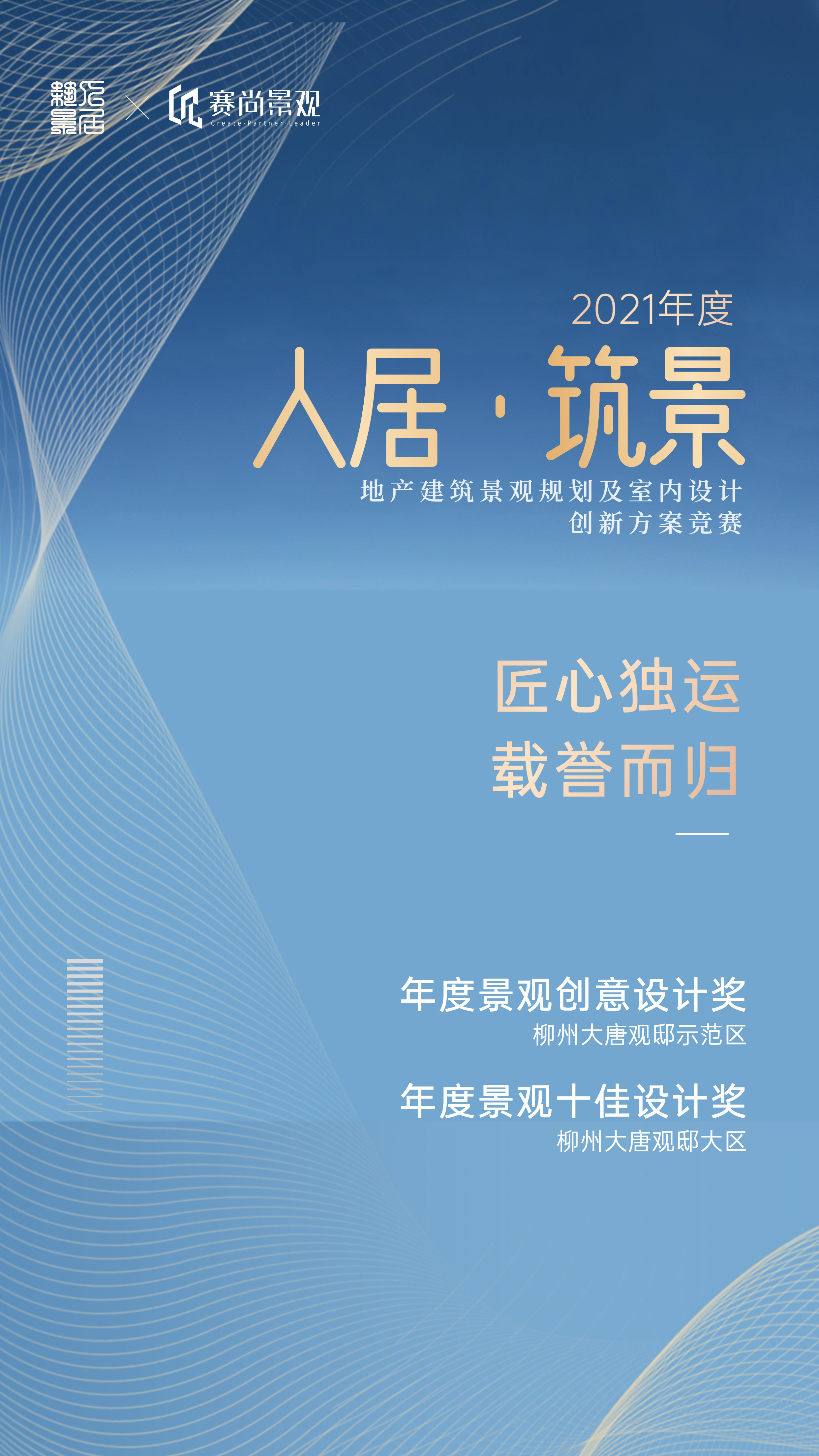 近日,全國“人(rén)居·築景”2021地(dì)産建築景觀規劃及室内設計(jì)創新方案競賽公布獲獎結果。賽尚景觀旗下【柳州大(dà)唐觀邸示範區】、【柳州大(dà)唐觀邸大(dà)區】憑借憑借優秀的(de)設計(jì)實力,從衆多優秀的(de)參賽作品中脫穎而出,一舉斬獲2021全國人(rén)居年度景觀創意設計(jì)獎“、2021全國人(rén)居年度“景觀十佳設計(jì)獎”,總共兩項大(dà)獎,載譽而歸!